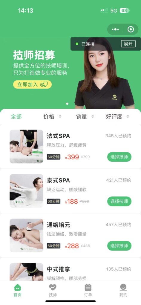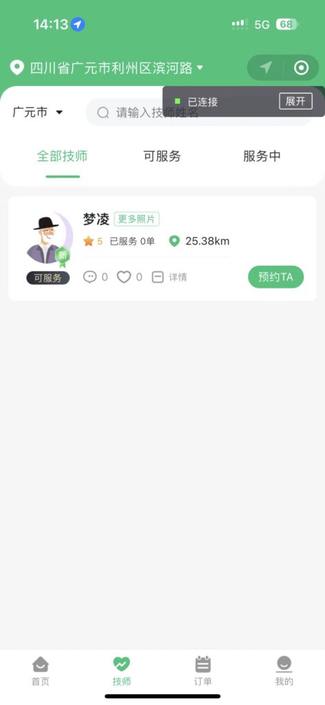 技师招募  技师端功能  佣金结算  接单功能  服务项目选择  服务范围选择等等